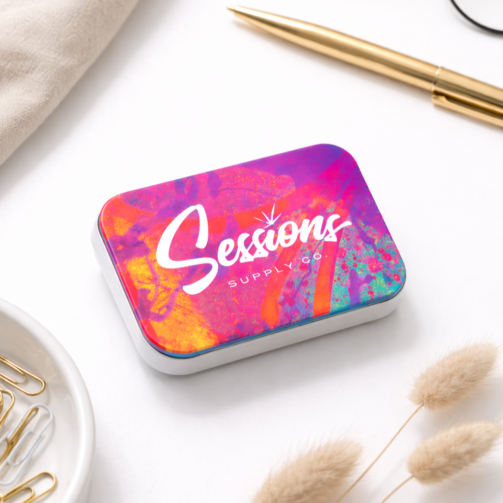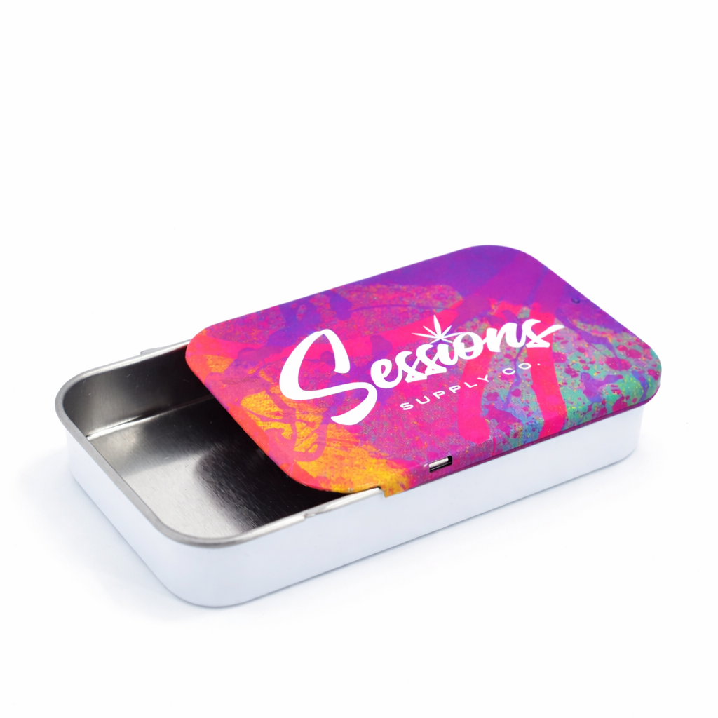 The Slide Tin is completely customizable with color, finish, and print. Optional insert tray can be custom molded to fit your product. Click here to view more details.